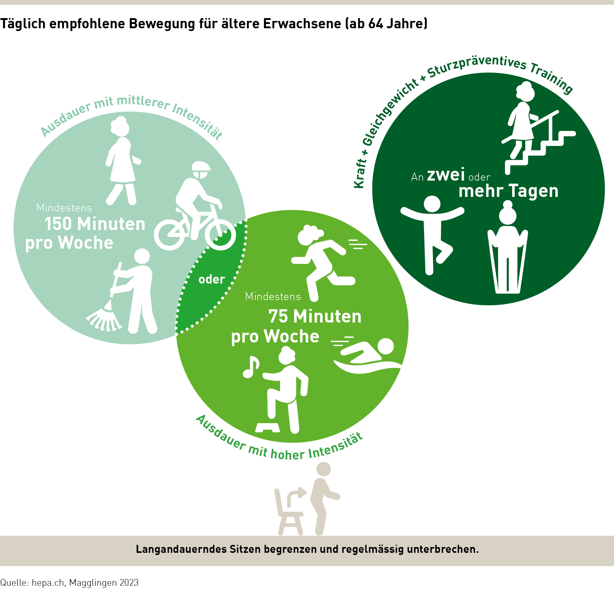 Wir raten Ihnen, die Bewegungsempfehlungen des Bundesamts für Sport BASPO: