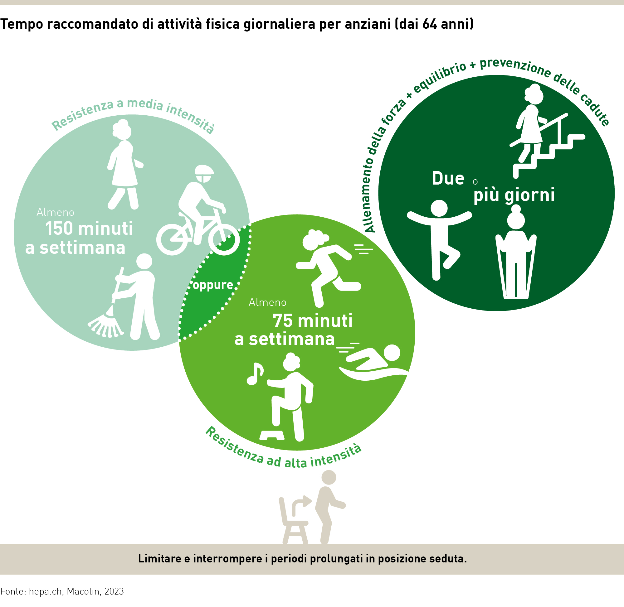 Vi consigliamo di seguire le raccomandazioni di movimento dell’Ufficio federale per lo sport UFSPO: